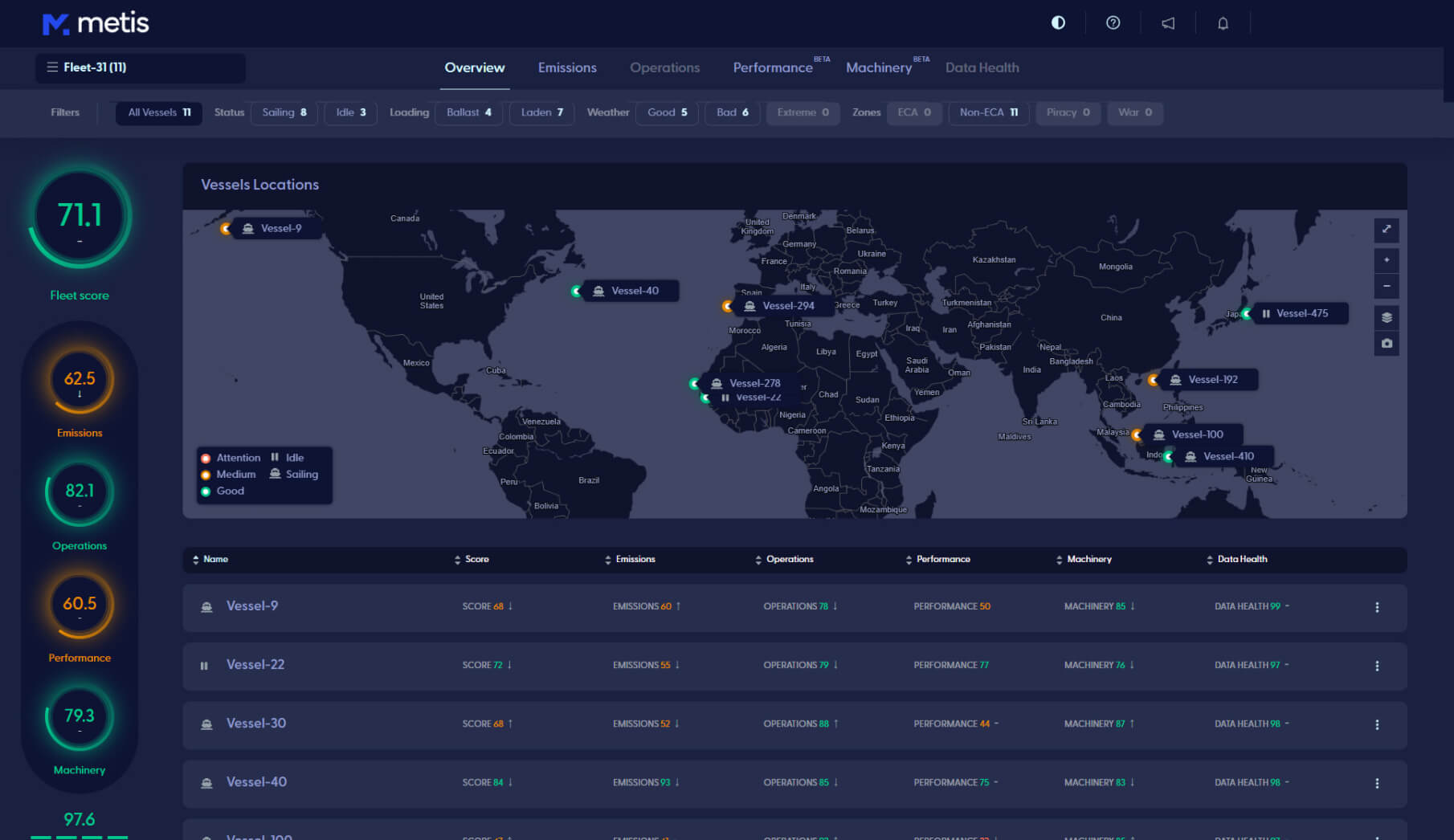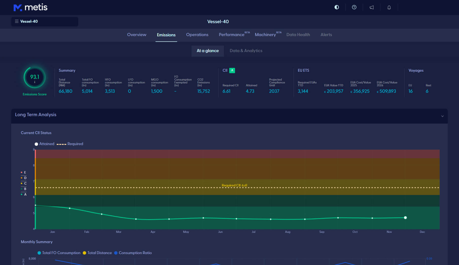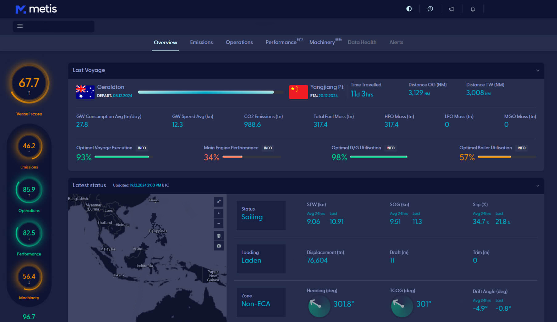 Detailed overview of a ship’s operational status, voyage details, performance metrics, and KPIs, based on reliable, high-frequency data.