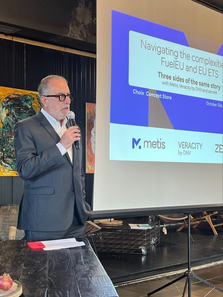 On 31 October, Metis , , Veracity by DNV and zero44, cohosted an event to explore the complexities of navigating FuelEU and EU ETS regulations. During the event experts from the three companies offered valuable insights into managing these regulations, while highlighting innovative strategies to enhance fleet performance, reduce emissions, and maintain industry leadership.